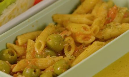 8. Разогреваем сковороду, выкладываем соус, пасту, всё объединяем.