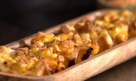 5. Добавьте лавровый лист, тёртый мускатный орех, репчатый лук, гвоздику и горгонзолу. Готовый соус протрите через сито.