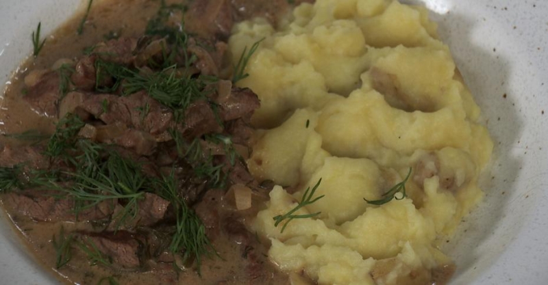 12. Подаем мясо с пюре и зеленью.
